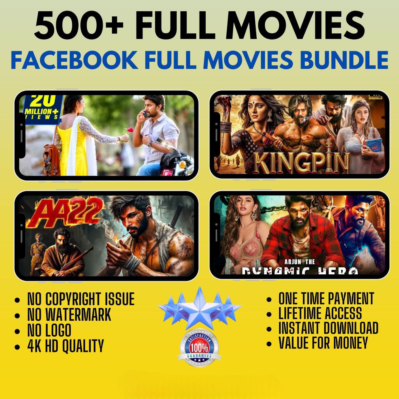 Experience nonstop cinema with our 500+ Full Movies Facebook Bundle — featuring high-quality, watermark-free, logo-free films ready to upload, share, or enjoy. 🎬🔥 Perfect for creators, page owners, and movie lovers who want pure HD content without limits.