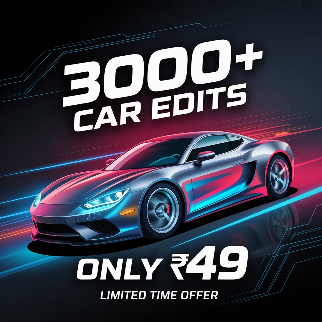 Get 1000+ luxury car edits in HD quality – perfect for reels, thumbnails & aesthetic content. Just ₹49 – Limited Time