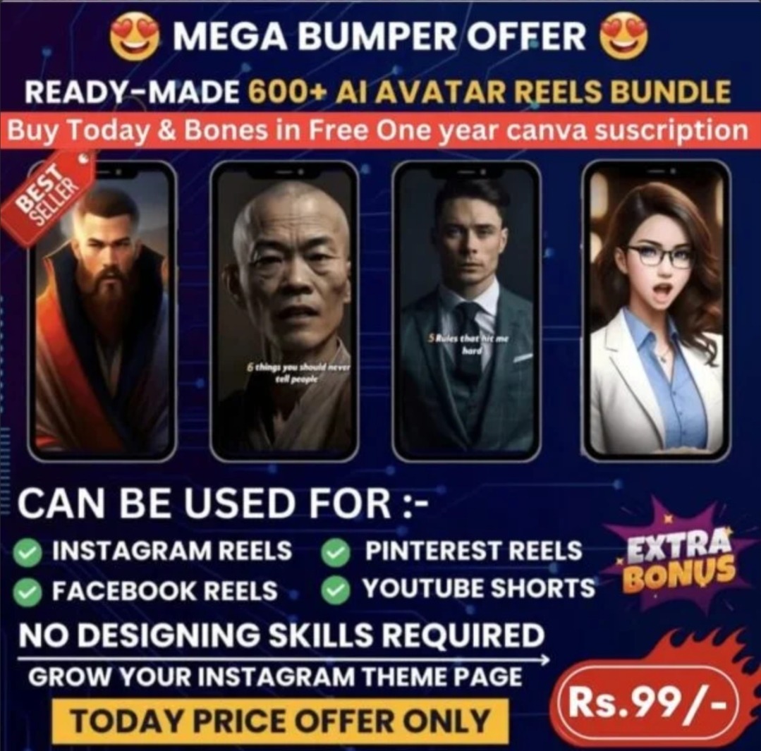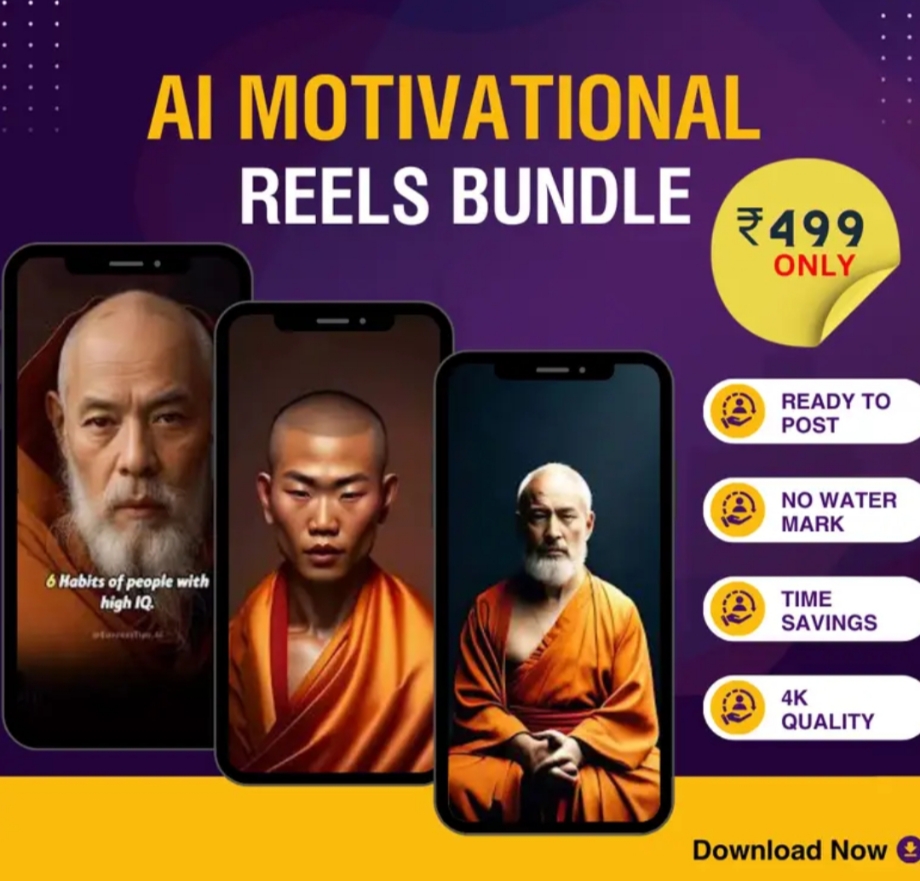 Aaj kal AI Avatar Motivational videos Instagram aur YouTube par sabse zyada trend kar rahe hain. Is bundle ki madad se aap bina video banaye ya editing seekhe rozana viral content post kar sakte hain.