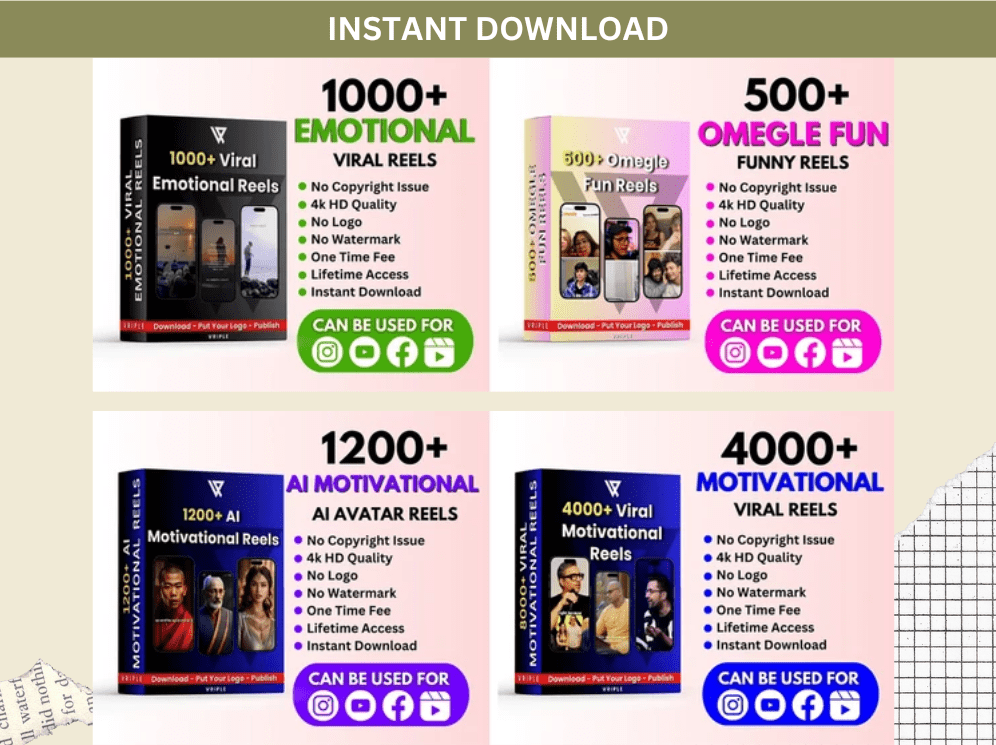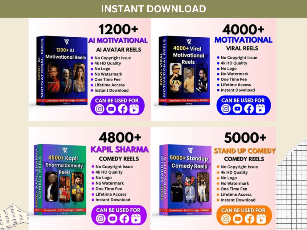 ✅GET 30+ Category READYMADE REEL(HINDI & ENGLISH) VIDEOS