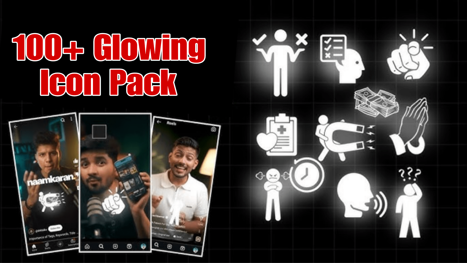 Upgrade your edits with this 100+ Glowing Icon Pack — sleek, neon-style icons that add a modern, eye-catching touch to your videos and reels!