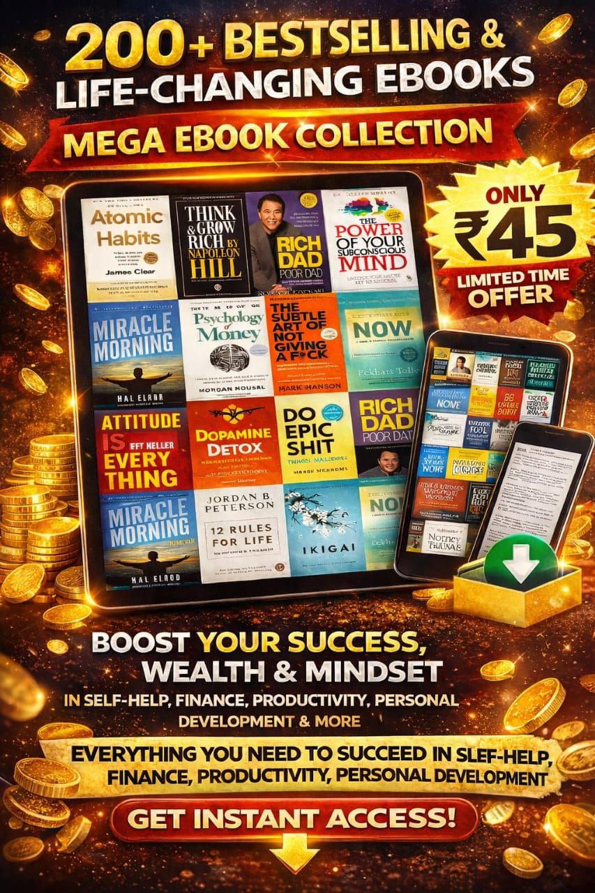Unlock the power of knowledge with this 200+ Bestselling & Life-Changing eBooks Mega Collection, carefully curated to help you upgrade your mindset, boost productivity, build wealth, and transform your life.
