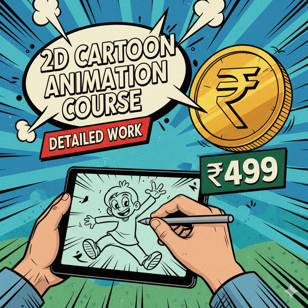 Start animating! Learn detailed 2D Cartoon Animation from fundamentals to pro techniques. Bring characters to life for only ₹49