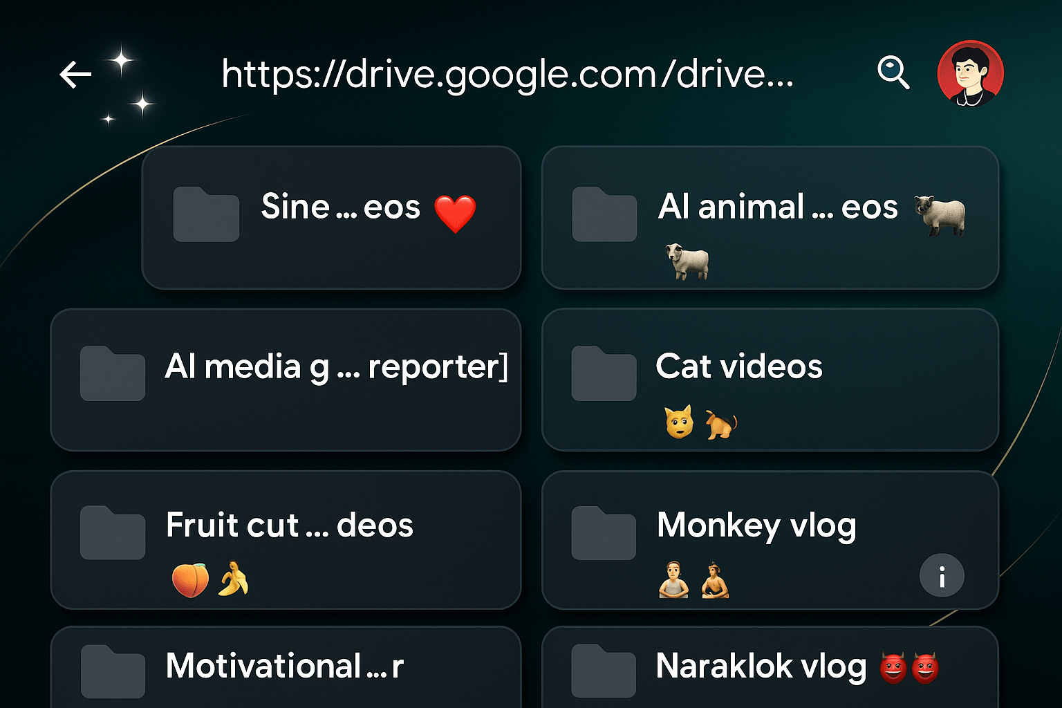 A clean, well-organized Google Drive packed with AI videos, animal clips, vlogs, motivational content, and more — perfectly sorted for fast access and smooth content creation. 🚀✨