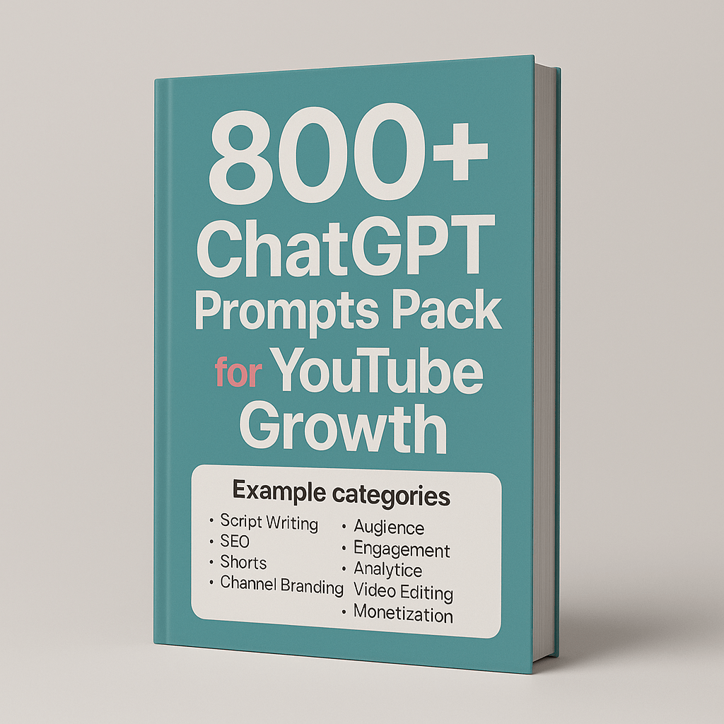 Unlock explosive YouTube growth with our 800+ ChatGPT prompts! This comprehensive guide provides ready-to-use prompts covering scripts, shorts, SEO optimization, audience engagement strategies, and monetization techniques. Stop guessing and start dominating. Each prompt is designed to spark creativity and generate high-quality content that resonates with viewers. No more writer’s block! Simply copy, paste, and watch your channel soar. This isn’t just a collection of prompts; it’s a proven system for creating engaging videos that attract subscribers and boost your channel’s visibility. We’ve included bonus AI tips specifically tailored for faceless YouTube channels, helping you build a strong brand and connect with your audience even without showing your face. This is your shortcut to YouTube success. Transform your channel from stagnant to thriving with the power of AI-generated content. Get started today and experience the difference!