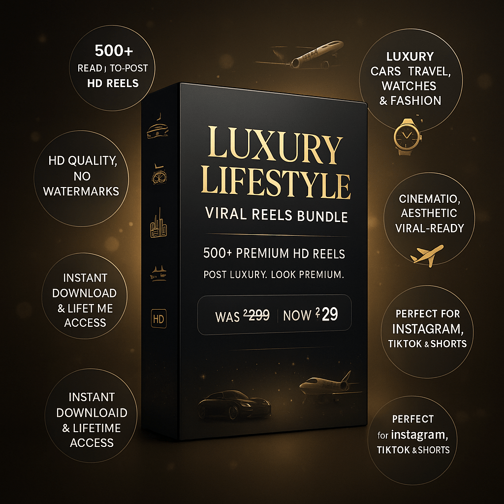 Get 500+ ready-to-post lifestyle reels featuring cars, travel, fashion, and elite living — perfectly curated to boost your reach and make your brand look world-class.