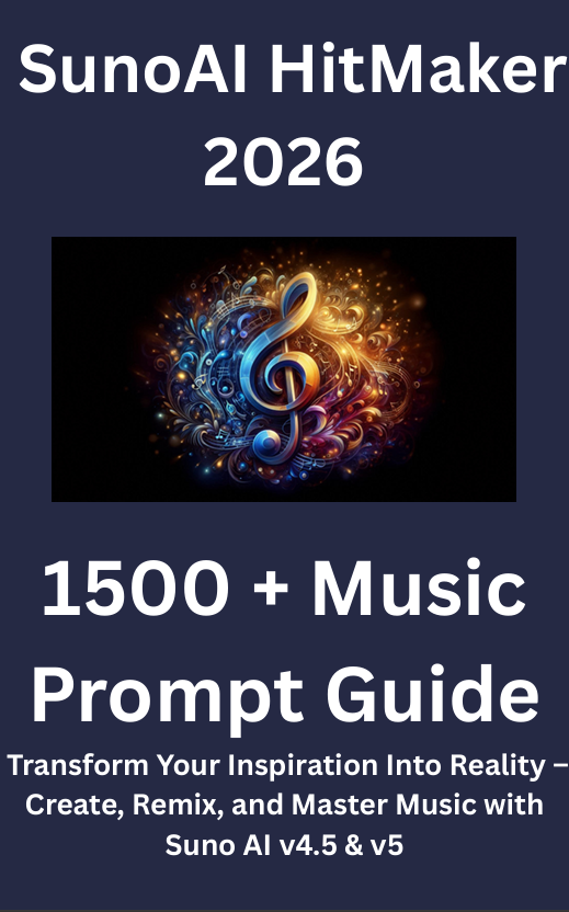 This ebook is all-in-one, beginner-friendly, and designed to boost your creativity while saving time. From generating unique songs to creating stunning album covers and social media visuals, SunoAI HitMaker covers every step of the AI music workflow.