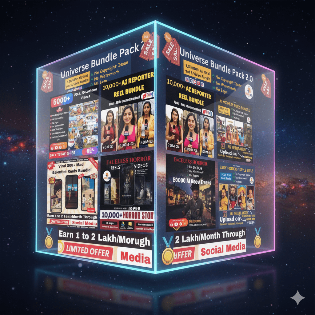 This massive Universe Bundle Pack 2.0 contains 1,50,000+ viral-ready videos across the most trending niches worldwide.